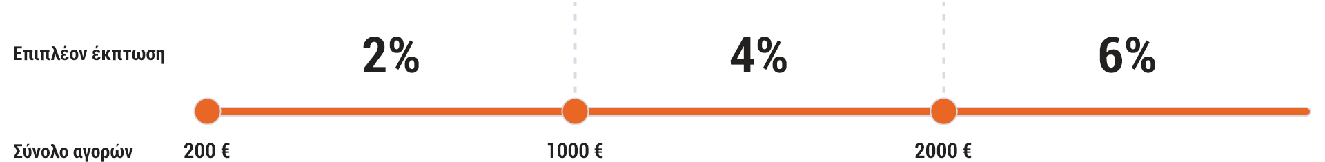 Αγοράστε νέα προϊόντα στο κατάστημά μας και λάβετε εκπτώσεις για την υπέρβαση των ορίων! Οι τιμές που παρουσιάζονται στο κατάστημα θα μειώνονται αυτόματα κατά την αξία της συγκεκριμένης έκπτωσης.